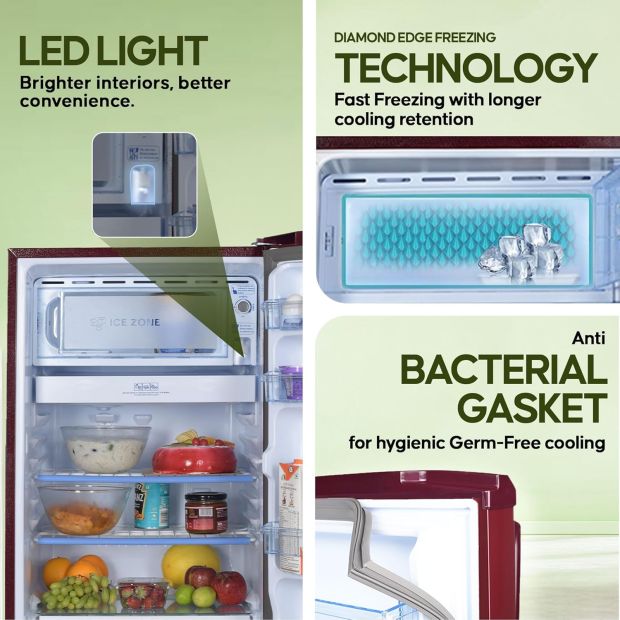 - Direct Cool Refrigerator: Stylish single door refrigerator with new red steel pattern. Enjoy powerful cooling of this fridge that can last longer.