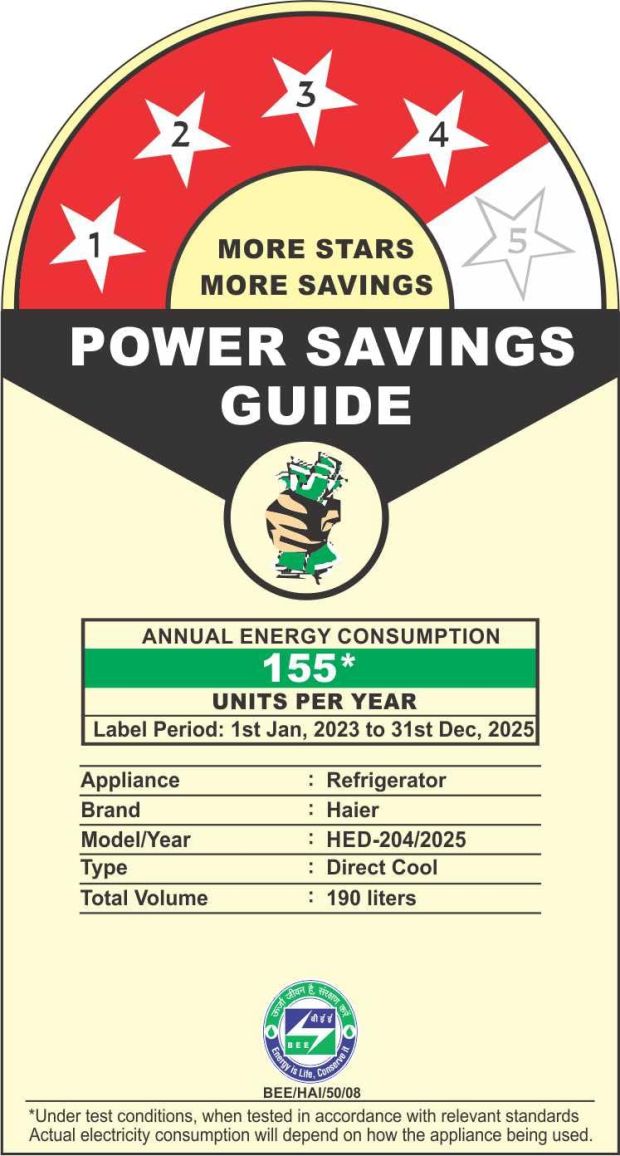- Energy Rating: 4 Star Refrigerator - High Energy Efficiency | Annual Energy Consumption: 155 KWH.