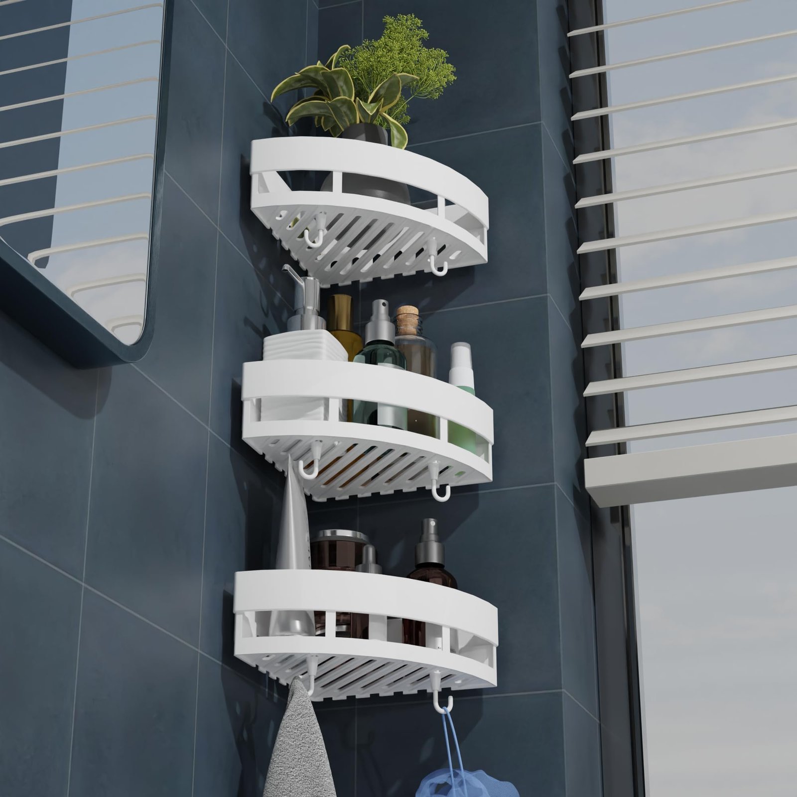 A "bathroom corner shelf with hook" is a convenient and functional accessory designed for bathrooms. This type of product typically combines a shelf with a hook, allowing you to utilize corner spaces effectively for storage and organization. Here's a description of what you might expect from a bathroom corner shelf with a hook: A bathroom corner shelf with hook is a versatile solution for optimizing corner spaces in your bathroom. It's designed to provide both shelving for storage and a hook for hanging towels, robes, or other items. This space-saving design is especially useful in bathrooms where maximizing every inch of space is important. No Drilling, Holes,Tools,Screwsre, required for mounting this home accessories, bathroom corner shelf, corner shelf for kitchen on wall. This rack for storage, bathroom stand, bathroom shelves or washroom shelf, comes with self adhesive locking hook pads.This bathroom organizer storage rack, bathroom corner works best on tiles, marble, glass, etc. This adhesive shelf for bathroom, bathroom accessories items and bathroom shelf for wall is Easily Removable and Re-install.