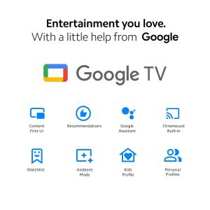 - Smart TV Features: Google TV, Built-In WiFi, Chromecast built-in, 1.5GB RAM, 8GB ROM, Supported Apps: Netflix, Prime Video, YouTube, Zee5, etc.,ARC (Dolby Atmos Pass-through), ALLM (Auto Low Latency Mode), and Google Assistant Operation
