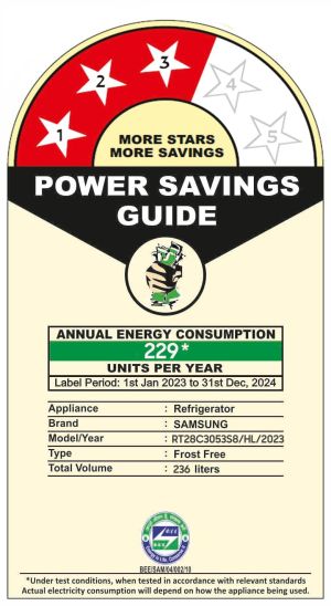 - Energy Rating : 3 Star Energy Efficiency
