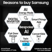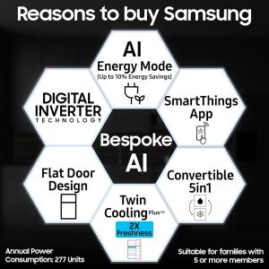 - Special Features : AI Energy Mode | SmartThings | Convertible 5-in-1 | Twin Cooling Plus | Power Freeze | Power Cool