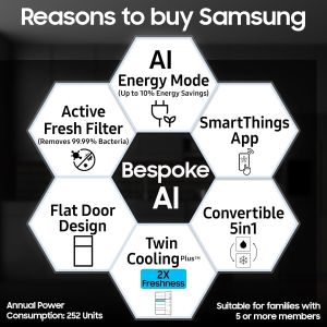 - Special Features : AI Energy Mode | SmartThings | Convertible 5-in-1 | Twin Cooling Plus | Active Fresh Filter | Fresh Room | Power Freeze | Power Cool