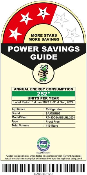 - Capacity 419 liters: Suitable for families with 3 to 4 members