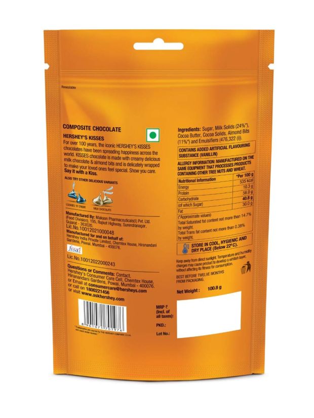 Hershey's Kisses Almonds | Melt-In-Mouth Chocolates | 100gm